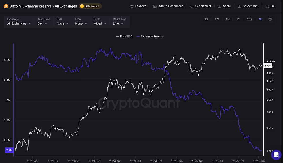 Le riserve sugli exchange mostrano quanta offerta è immediatamente disponibile.